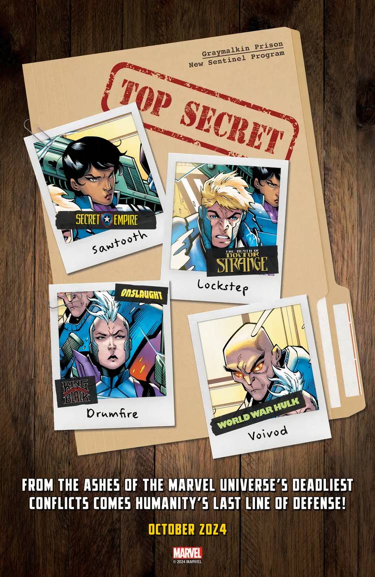 El comunicado de prensa de Marvel para la próxima serie X-Men, cuyo título y equipo creativo se anunciarán pronto, muestra cuatro personajes nuevos para el Universo Marvel. Los nuevos personajes, que podrían ser las formas más nuevas de los híbridos Omega Sentinel humano/máquina, son Drumfire, Lockstep, Sawtooth y Voirody todos están conectados con varias tragedias de Marvel.