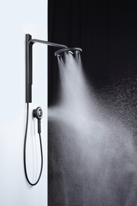 Nebia hace un poco de trampa al tener también una segunda cabeza de ducha disparando desde la cadera. La varita se agrega al agua que se está utilizando, pero aún así mantiene el sistema usando aproximadamente la mitad de la cantidad de agua que utiliza el cabezal de ducha promedio.