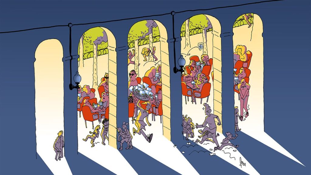 En las últimas semanas he paseado por una Córdoba desierta y una Málaga amable que empezaba a recibir a los primeros ingleses, y he podido asomarme a mundos parecidos al de mi plaza, insólitos en esas ciudades tan fatigadas por las sandalias de los guiris (la mía, por suerte o por desgracia, nunca ha despertado mucho interés turístico). Se ha escrito mucho del silencio de las calles sin coches y del trino de los pájaros durante el confinamiento duro de 2020, pero no tanto —quizá por no entristecer más a los dueños de los hoteles— de la quietud de unas calles recuperadas por los lugareños. Me parecía que algunos vecinos deambulaban alucinados, un poco sonámbulos. Hacía tanto tiempo que el centro y los monumentos les eran extraños que los miraban como por primera vez.