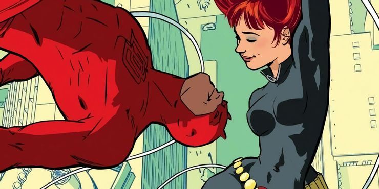 En los cómics, Daredevil suele ser bien conocido por su relación romántica con Elektra Natchios después de haberla conocido en la universidad, aunque su relación experimentaría altibajos en los años siguientes, ya que su naturaleza violenta a menudo entraba en conflicto con los ideales de Matt. Sin embargo, Daredevil y Black Widow intentarían salir juntos después de que ella se mudara a San Francisco y operara como un héroe independiente junto a él, aunque los dos se separarían más tarde después de su regreso a los Vengadores y temían que su relación la estuviera convirtiendo. en un compañero. Los dos se reunirían más tarde en la ciudad natal de Matt, la ciudad de Nueva York, aunque Black Widow fracasaría en su intento de reavivar su relación al encontrarlo saliendo con Heather Glenn y darse cuenta de que ahora solo piensa en ella en términos platónicos.