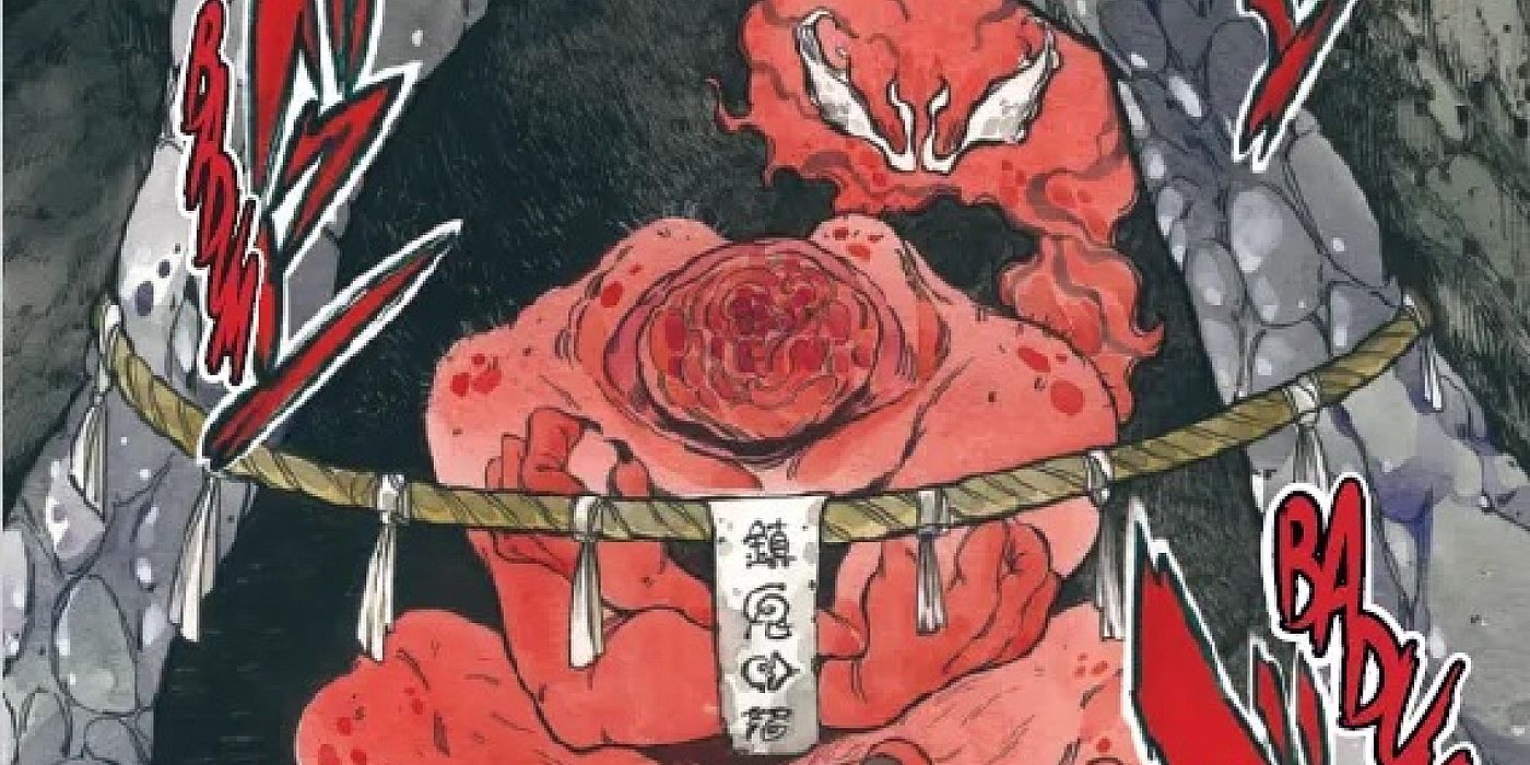 Ahora, se ha convertido en una despiadada máquina de matar a nivel de Dios después de una feroz batalla con el Rey de Negro donde fue coronado como el Asesino de Simbiontes Definitivo. Nada puede interponerse en su camino ahora, y al darle una forma que refleja al dios del caos lovecraftiano Cthulhu, Momoko ha resumido perfectamente lo poderoso que es Carnage. Compare este diseño con el giro anterior de Momoko en el simbionte asesino. Guerras de demonios #1: El samurái de hierro – de Peach Momoko y Zack Davisson – muestra a Carnage meditando en una cueva. Su casa está bloqueada por una cuerda para evitar que los aldeanos entren y lo interrumpan, pero la forma en que lo representan insinúa que hay un animal al acecho.