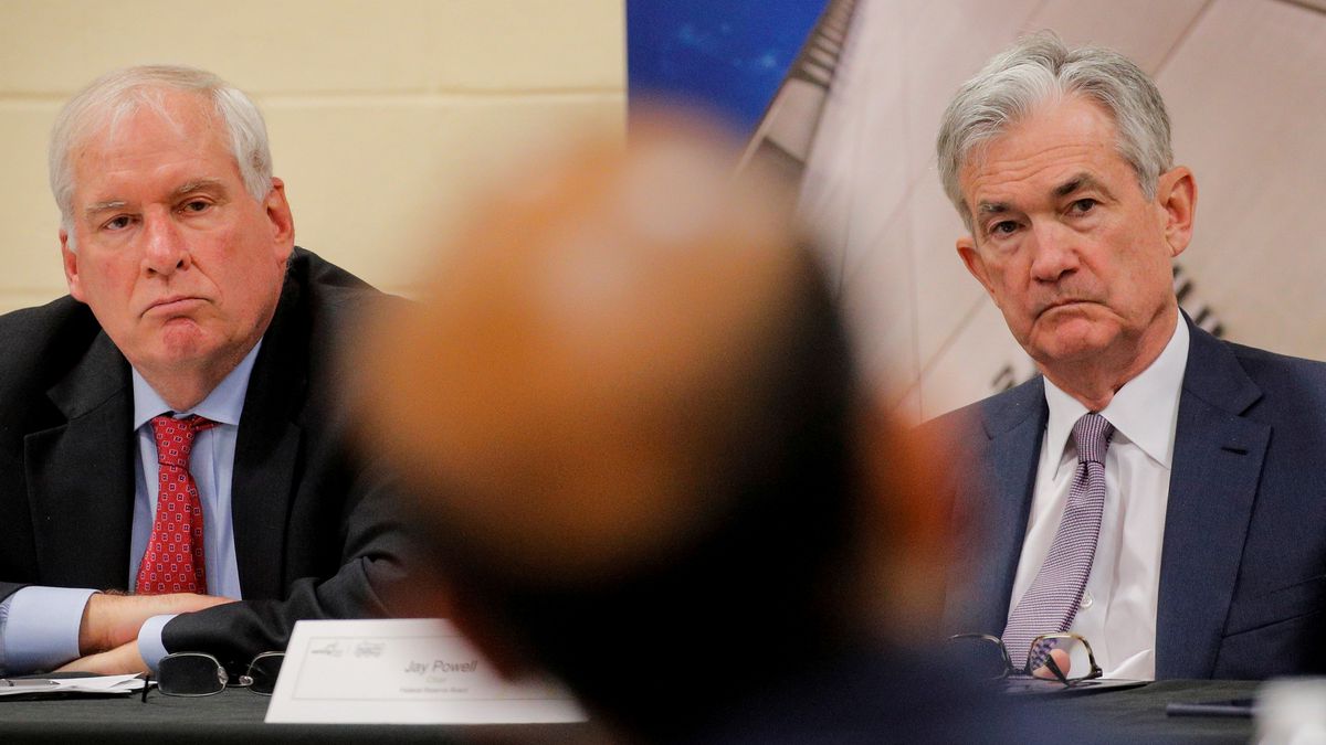 Jerome Powell (derecha) y Eric Rosengren, entonces presidente de la Fed de Boston, en un acto en East Hartford (Connecticut) a finales de 2019.BRENDAN MCDERMID (Reuters)