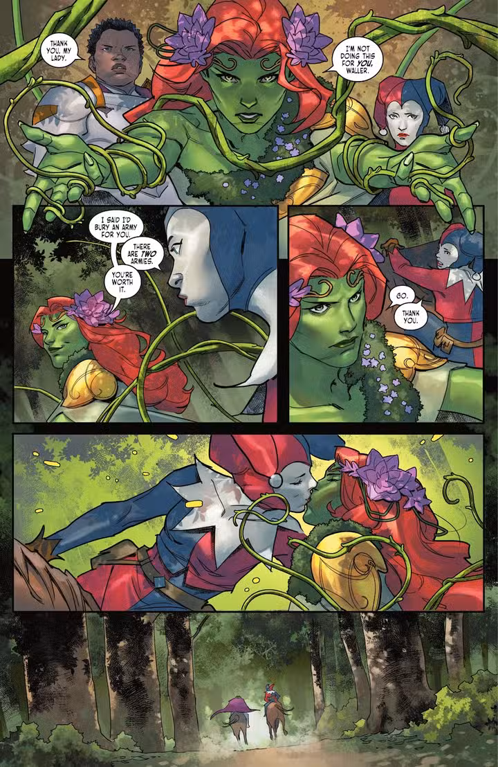 Las alineaciones y lealtades de cada personaje crean una narrativa atractiva a medida que interactúan entre sí, con relaciones románticas entre personajes como Harley Quinn e Ivy o la Casa de El’s Zala y las Amazonas de la Diana de Amazonia (la reina Diana, después de que su madre, Hipólita, fue dividida en dos por un marciano blanco que se hacía pasar por la reina Lara, la madre de Zala) son particularmente intrigantes. Caballeros Oscuros de Acero II Con suerte, progresará en cada historia y personaje que escribió y también presentará otros nuevos y emocionantes.