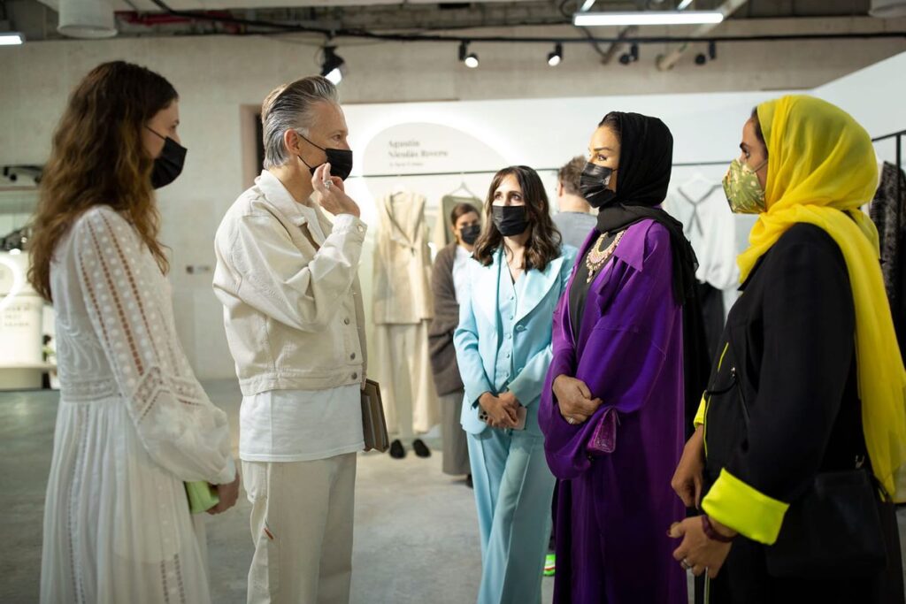 El concurso, que celebró su primera edición en 2019 y tuvo que frenar en seco con la llegada de la pandemia, cuenta además con un país invitado de una economía emergente. Este año se trataba de Colombia: “Uno de los principales asesores de la casa real catarí es colombiano, de ahí la conexión”, explicaba la creativa Juanita García, que no podía creerse que Haider Ackermann hubiese alabado sus cortes o que Elie Saab acabase de hablarle maravillas sobre el crochet que tejen para ella las mujeres artesanas de Boyacá y que forma parte de las prendas que crea mezclando esas labores ancestrales con restos de tela de Hermès o Loro Piana que compra a proveedores de retales viejos. Porque aunque suene paradójico, en la cuna de la economía del petróleo la sostenibilidad también vertebra las conversaciones, y el debate estaba muy presente en este certamen de moda donde el jurado ponía especial atención a los proyectos que tuviesen en cuenta la trazabilidad de sus productos.