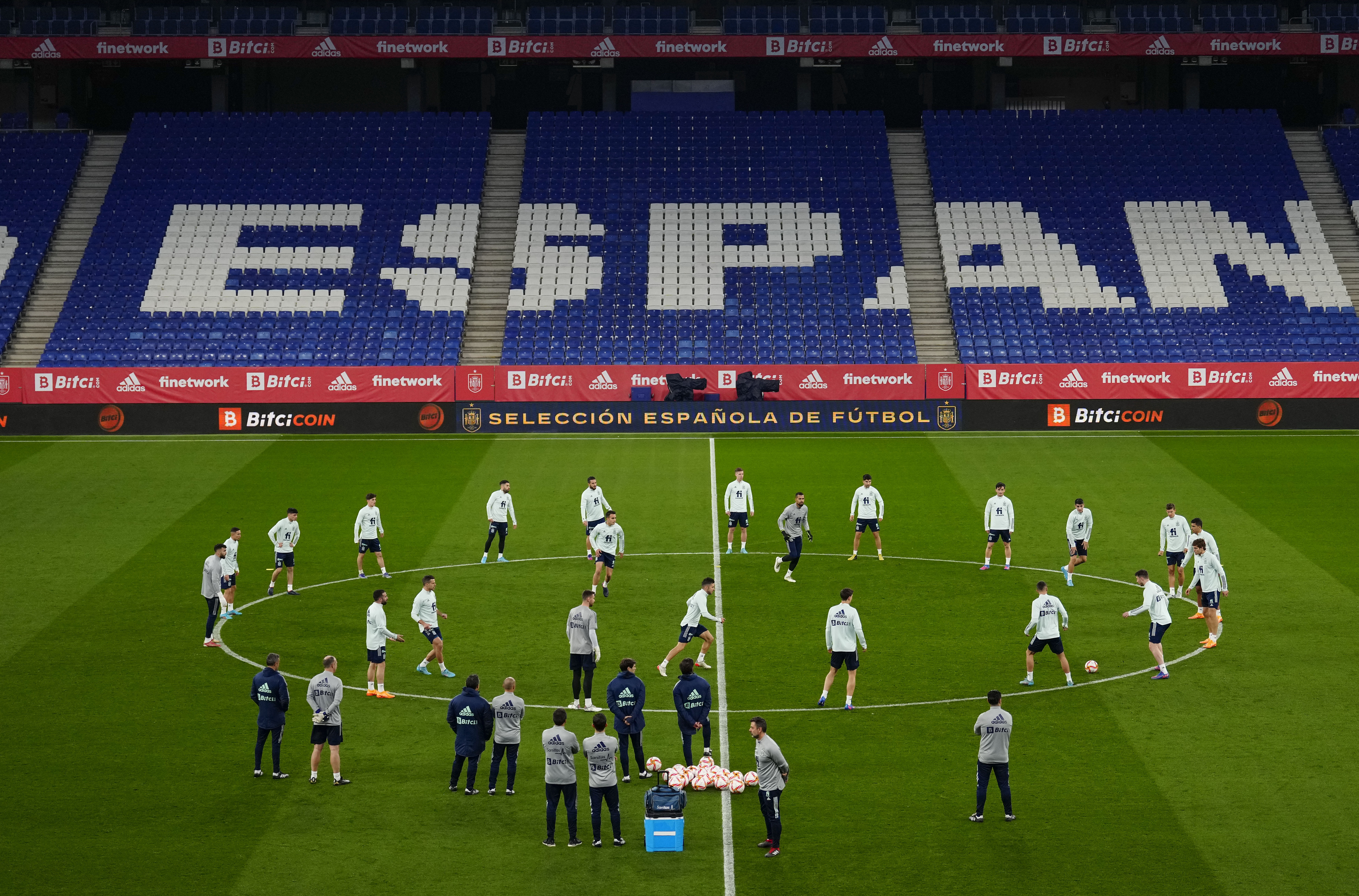 DirectoLos jugadores de la selección española participan en el entrenamiento de este viernes, previo al partido amistoso que jugarán este sábad<<oante Albania en el RCDE Stadium de Cornellá, Barcelona.Enric Fontcuberta (EFE)