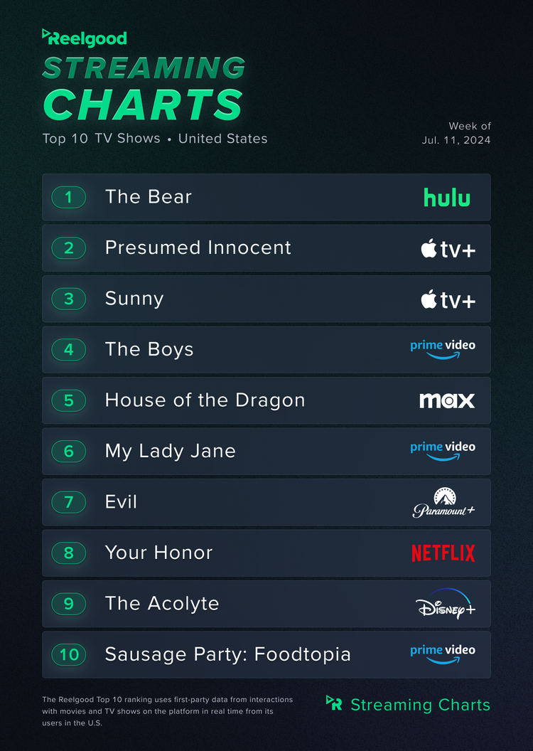Ahora, poco después de que se lanzaran los ocho episodios en Prime Video, la serie secuela se ha convertido en un éxito de transmisión. Para la semana del 11 al 17 de julio, Fiesta de las salchichas: Foodtopia ocupó el décimo lugar en la lista de los 10 mejores programas de TV en streaming de ReelgoodSe clasificó por debajo El acólito, Su Señoría, Demonio, Mi señora janey Casa del Dragón en los últimos cinco puestos. Consulta el cuadro completo a continuación: