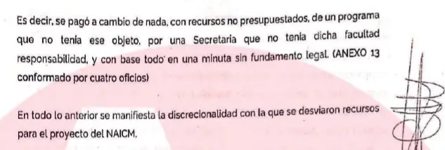 “Es decir, se pagó a cambio de nada, con recursos no presupuestados, de un programa que no tenía ese objeto, por una secretaria que no tenía dicha facultad responsabilidad, y con base todo en una minuta sin fundamento legal”, precisó Zebadúa.