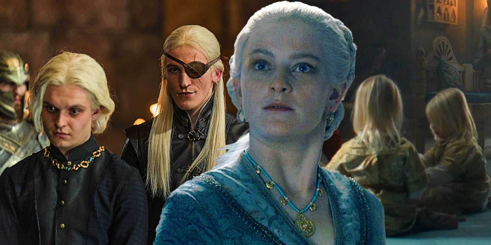 Una de las teorías más populares de Aemond Targaryen es ahora mucho menos plausible después Casa del Dragón Temporada 2, episodio 2. “Rhaenyra la Cruel” mostró las consecuencias del horrible asesinato de Jaehaerys Targaryen en lo que se conoció como “Sangre y queso”, una referencia a los dos hombres detrás de la muerte del primogénito del rey Aegon II y la reina Helaena. Aegon II tomó la muerte de su hijo como algo personal. insulto y quería acción inmediata, mientras que Helaena tuvo que convertirse en la cara de la tragedia en un intento de poner al reino en contra de Rhaenyra.