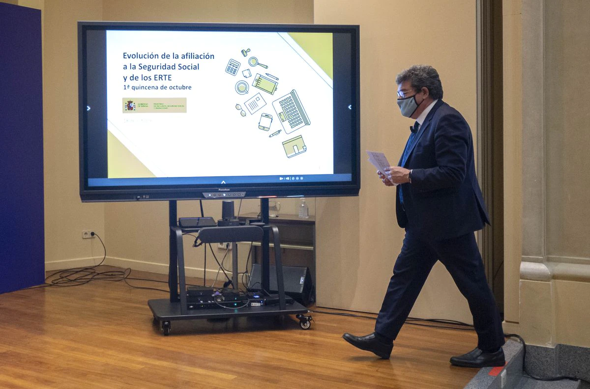 La recuperación del mercado de trabajo camina de forma sostenida y lo hace con especial brío en el mes de octubre, que terminará con más de 91.000 nuevos empleos, según ha desgranado este lunes José Luis Escrivá, ministro de Inclusión, Seguridad Social y Migraciones, tomando como referencia los datos obtenidos por su departamento durante la primera quincena del mes. Escrivá los ha calificado como “relativamente inhabituales”, ya que sumando estos a los registrados desde el mes de mayo elevan hasta 630.000 las afiliaciones obtenidas durante este periodo, una cifra muy superior a la registrada entre julio y octubre del año pasado, el periodo con mejores números hasta el momento. A la recuperación laboral también ha contribuido un mes más la merma en el número trabajadores en ERTE, que a 15 de octubre agrupaba a un total de 208.847 personas, lo que supone un mordisco del 13% a la bolsa con la que concluyó el pasado mes de septiembre.