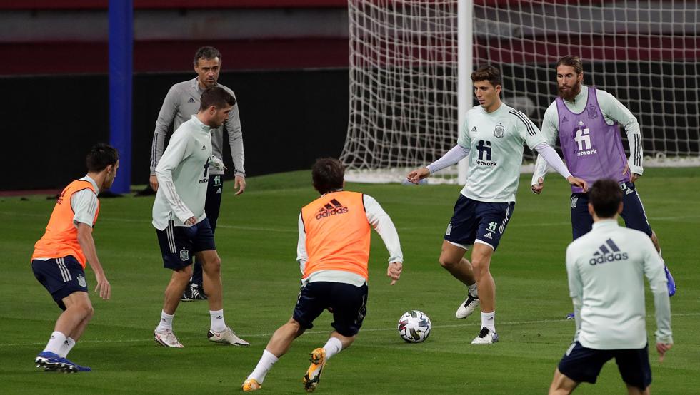 La selección española trabajó este lunes por la tarde sobre el césped del estadio de La Cartuja, en Sevilla, y ultimó la preparación del partido que el martes disputará en este escenario ante Alemania, de la sexta y última jornada de la fase de grupos de la Nations League, en el que ambos equipos se juegan la clasificación para la ronda final.