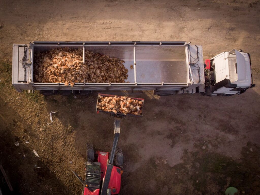 Retirada de los cadáveres de las miles de gallinas sacrificadas en una granja de Íscar (Valladolid) por un brote de gripe aviar en febrero.Greenpeace/Pedro Armestre (Greenpeace/EFE)