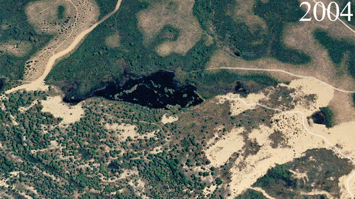 El 27 de abril de 2004, un sensor aeroportado AHS del Instituto Nacional de Técnica Aeroespacial (Inta) sobrevoló Doñana para cartografiar con una resolución de 0,5 metros por 0,5 metros sus lagunas temporales: 2.867 cuerpos de agua al margen de la marisma en el espacio protegido más emblemático de España y Patrimonio de la Humanidad por la Unesco. De todos ellos, la pasada semana quedaban dos lagunas, Santa Olalla y la Dulce, con solo 45 centímetros de profundidad en su punto más hondo.