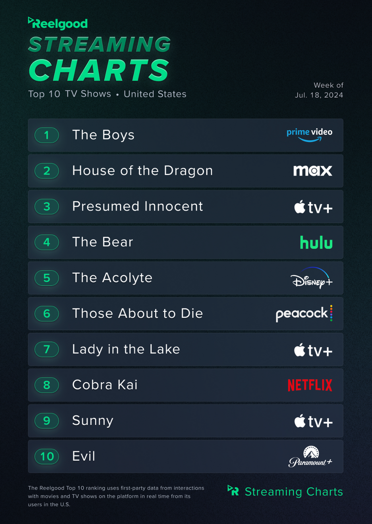Nuevos datos de Reelgood ahora revelan que Los que están a punto de morir se ubica como el sexto programa de televisión más popular en streaming en los EE. UU. durante la semana del 18 al 24 de julioEl drama de la Antigua Roma supera a otros como La dama del lago, Cobra Kai, Soleadoy Demoniopero no está a la altura de otros títulos como El acólito y El osoConsulta la lista completa de los 10 mejores a continuación: