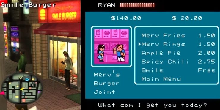 Los jugadores pueden ver las estadísticas en una pantalla de menú en Rescate de River Cityy compra comida y equipo para mejorar habilidades como puñetazos, patadas y defensa, o manuales para aprender ataques especiales. Las armas cercanas, incluidas las armas improvisadas como botes de basura, proporcionaron una ventaja en Rescate de River City, así como Kiryu puede manejar una bicicleta tan fácilmente como un cuchillo. Los enemigos derrotados dirían cosas como “Descalzo, ”Y deje dinero para que el jugador lo recoja. Yakuza las peleas están más cerca de los luchadores como Rescate de River City que Shenmue, que modeló su combate en el Virtua Fighter motor. Los enemigos derrotados a menudo le dan a Kiryu dinero o un artículo como disculpa, y comer comida conduce a un aumento de puntos de experiencia en la mayoría de los casos. Yakuza juegos. Yakuza también incluye algunos guiños directos a Rescate de River City, como su franquicia de comida rápida Smile Burger, un homenaje a Merv’s Burger Joint del clásico de NES, donde una “sonrisa” aparecía en el menú y siempre era gratis.