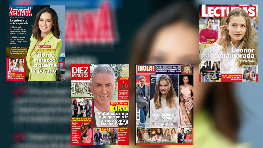 Como ocurre cada miércoles, la actualidad más candente del país a nivel social ha llegado a los kioscos. En esta ocasión, ha llamado especialmente la atención la portada de Semana, revista en la que Olga Moreno ha protagonizado una esperadísima entrevista en la que ha hablado largo y tendido sobre su relación con Antonio David. Por otro lado, la Princesa Leonor se ha convertido en el centro de atención de ¡Hola! y Lecturas, dada su creciente actividad pública. Y por último, Kiko Hernández ha hablado para Diez Minutos para dar un análisis sobre la nueva edición de Supervivientes.
