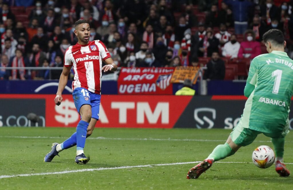 Fue del Atlético el final del primer tramo, pero no el arranque del segundo. El Celta se volcó en campo contrario. No hacía daño más allá de un racimo de centros laterales y saques de esquina que también delataron cierta mejoría rojiblanca en la defensa de jugadas que han sido su cruz este curso. Un córner peinado hacia su portería por João Félix no consumó el empate porque Vrsaljko dificultó metiendo el cuerpo que Aidoo pudiera empujar la pelota a puerta vacía. Esa fue la muesca más dañina del equipo de Coudet. Justo cuando el Atlético parecía acusar el desgaste del partido con el United, Kondogbia y Lodi repitieron maniobra. Hugo Mallo volvió a perderle la espalda al lateral brasileño, que esta vez remató de primeras el milimétrico cambio de juego. La pelota se coló ante las piernas de un incrédulo Dituro.