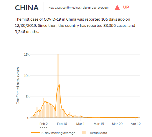La tasa de crecimiento de los casos de coronavirus de China, que alcanzó un máximo de 83.306 y condujo a 3.345 muertes, ha disminuido y partes del país han comenzado a reabrir desde el cierre. Sin embargo, todavía hay debate sobre la veracidad de los datos que salen de China en COVID-19. Eso condujo a una disputa entre la Casa Blanca y la Organización Mundial de la Salud, que finalmente vio al presidente Trump detener las contribuciones de Estados Unidos al organismo global esta semana.