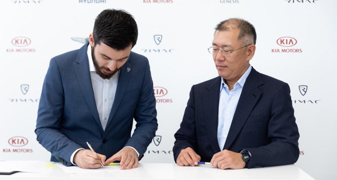 [Left to right] Mate Rimac, fundador y CEO de Rimac Automobili, y Euisun Chung, Vicepresidente Ejecutivo de Hyundai Motor Group, sellan el acuerdo
