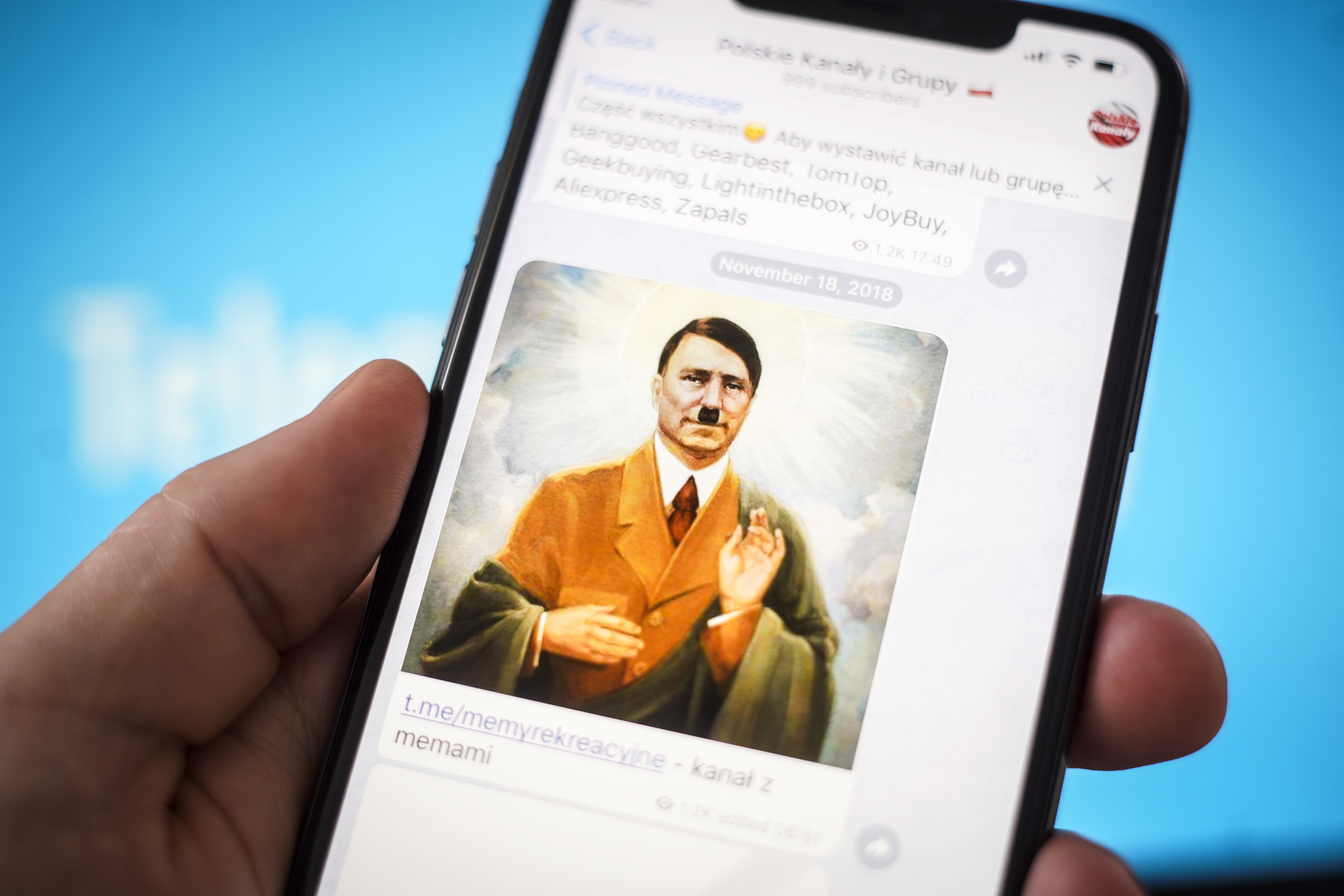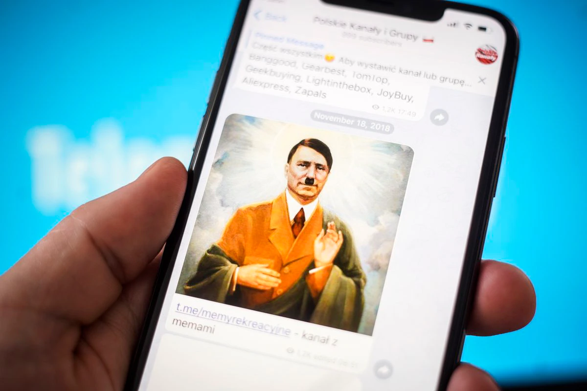 Imagen en un móvil que mezcla las imágenes de Hitler y Jesucristo.Jaap Arriens (NurPhoto /Getty Images)