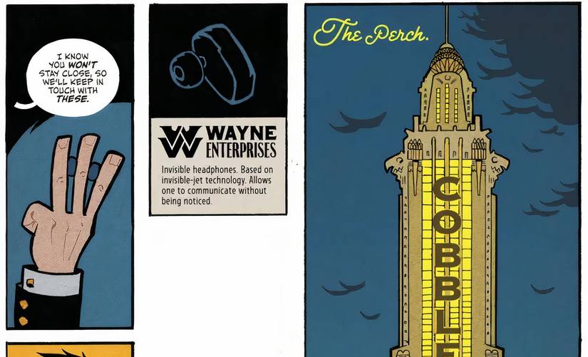 Ba’s El chico maravillaEl número 3 comienza con Damian y Tim, ambos vestidos de civil, dirigiéndose a una gala organizada por Oswald “El pingüino” Cobblepot. Damian no está muy contento de que su hermano mayor lo arrastre al evento como civil, pero acepta a regañadientes, ya que planea investigar el edificio debido a su posible conexión con su investigación en curso sobre un demonio que secuestra a los pobres de Gotham. Durante su viaje en auto, Los fanáticos conocen los auriculares invisibles de Wayne Enterprises, que se basan en la tecnología de chorro invisible.permitiendo “Uno para comunicarse sin ser notado.”