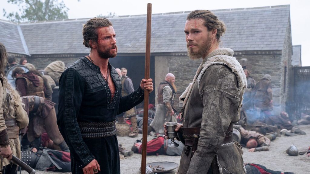 Vikingos: Valhalla. (De izquierda a derecha) Leo Suter como Harald, Sam Corlett como Leif en el episodio 103 de Vikings: Valhalla. cromo Bernard Walsh/Netflix © 2021