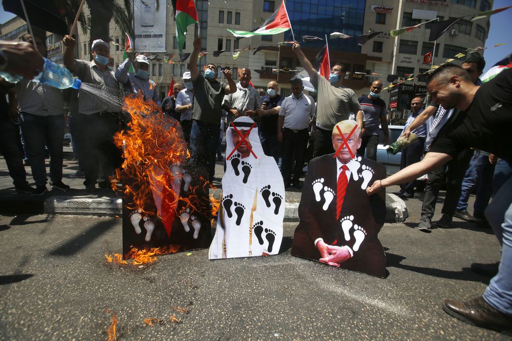 Manifestantes palestinos queman imágenes de Trump, Netanyahu y el jeque Bin Zayed, el viernes en Nablús (Cisjordania).Majdi Mohammed / APLejos de la épica del viaje del presidente egipcio Anuar el Sadat a Jerusalén en 1977, que abrió la puerta a los acuerdos de Camp David, y del cómplice intercambio de cigarrillos entre el monarca jordano Husein y el primer ministro hebreo Isaac Rabin, que selló el tratado de 1994, Israel y Emiratos Árabes Unidos (EAU) acaban de cerrar un contrato con la mediación del presidente Donald Trump, antiguo magnate inmobiliario. La paz de los pragmáticos de Benjamín Netanyahu y Mohamed Bin Zayed no estará escrita con la narrativa de las epopeyas, pero tanto el líder israelí como el jeque emiratí pueden haber marcado un hito en la estrategia de los aliados de EE UU en Oriente Próximo para contener a Irán.Está por ver si otras monarquías del Golfo, como Omán o Baréin, se atreverán a seguir los pasos del hombre fuerte de Emiratos y si algún día Arabia Saudí abrirá embajada en Tel Aviv, aunque Teherán ha recibido con inquietud la deriva diplomática. La declaración conjunta del jueves deja precisamente en barbecho la iniciativa árabe de paz, auspiciada por Riad desde hace dos décadas para ofrecer relaciones al Estado judío a cambio de poner fin a la ocupación.Bin Zayed ha roto con el principio central de que no cabe el entendimiento con Israel sin reconocimiento previo de un Estado palestino, de la misma forma que Trump puso fin a 70 años de consenso internacional sobre el estatuto de Jerusalén como capital compartida por dos pueblos.Israelíes y emiratíes se han comprometido ahora a firmar una serie de acuerdos económicos, culturales, de seguridad, turismo o tecnología destinados a establecer la “plena normalización de relaciones” y a acabar con el secreto a voces de sus estrechos contactos desde hace 30 años. Israel cuenta desde 2015 con una oficina de representación ante una organización internacional con sede en Abu Dhabi y ha sido invitado a participar en la Exposición Universal prevista en Dubái el año que viene.El director del Mosad (espionaje exterior), Yossi Cohen, ha viajado con discreción a Emiratos, donde en los últimos meses adquirió equipos médicos necesarios para combatir la pandemia en Israel. Aviones procedentes de Abu Dhabi han aterrizado en el aeropuerto Ben Gurion de Tel Aviv con cargamento de ayuda sanitaria contra el coronavirus para la población palestina. Y la prensa hebrea da cuenta de constantes viajes de deportistas, funcionarios y hombres de negocios israelíes para asistir a encuentros internacionales en ciudades emiratíes.Para la federación de monarquías del Golfo, el acuerdo con el Estado hebreo abre la puerta a la adquisición de armamento de última generación en Estados Unidos —por ejemplo, cazas furtivos F-35— que Israel suele vetar a aquellos países con los que no mantiene relaciones con el fin de apuntalar la superioridad tecnológica militar que le garantizan sus acuerdos con Washington.La decisión de Netanyahu de acelerar la anexión de los asentamientos de colonos judíos y del valle del Jordán en Cisjordania ha estado detrás del anuncio de normalización de lazos entre ambos países. Emiratos ha hallado en la paralización de la extensión de la soberanía israelí a un territorio palestino ocupado desde 1967 la oportunidad para justificar ante el mundo árabe la oficialización de sus contactos con el Estado judío. El plan de la Casa Blanca para Oriente Próximo presentado en enero, que autorizó la anexión de hasta un 30% de Cisjordania, brindó una ocasión única.Ha podido tratarse de una estratagema urdida para obtener una compensación virtual de Israel antes de que se consumase la anexión. Pero el alto precio político que Netanyahu tendrá que pagar ante su electorado más nacionalista ––prometió extender la soberanía durante tres comicios consecutivos desde abril de 2019 para acaparar el voto de los colonos— apunta a que el primer ministro ha actuado de forma meramente táctica. Ha aceptado el acuerdo con Emiratos después de que Trump bloquease en julio su declaración de soberanía parcial sobre Cisjordania.Netanyahu insistió el jueves en que su promesa electoral sigue estando vigente, pero Trump dejó patente horas después en la Casa Blanca que la cuestión había quedado ahora “fuera de la mesa” tras la “muy inteligente concesión ofrecida por Israel”. Como destaca el analista político de Haaretz Yossi Verter, “si Trump es reelegido intentará añadir otros Estados árabes al círculo de normalización, y si gana el demócrata Joe Biden, más aún”. “Así que ya puede declararse oficialmente la muerte de la anexión”, concluye.“Anexión o normalización”El mensaje de acercamiento emiratí no llegó por conductos diplomáticos paralelos, sino a plena luz en una tribuna publicada en junio en el diario Yediot Ahronot, el de mayor circulación en Israel. El embajador de Emiratos Árabes Unidos en Washington, Yusef al Otaiba, invitaba al Gobierno de Netanyahu a elegir entre “anexión o normalización”.La respuesta israelí se produce dos meses después, mientras el primer ministro se está viendo cuestionado con manifestaciones diarias en la calle por la gestión de la crisis sanitaria de la covid-19 y por la recesión económica que ha generado. El juicio por corrupción al que está siendo sometido por tres casos de soborno, fraude y abuso de poder le mantiene también contra las cuerdas frente a la oposición de centroizquierda.Su retorno a la escena internacional como veterano estadista, capaz de establecer relaciones estables con el mundo árabe, le ha devuelto el reconocimiento de muchos ciudadanos israelíes. Netanyahu se planteaba ahora la ruptura de la coalición con el centrista Benny Gantz y la convocatoria de las cuartas elecciones legislativas en año y medio.El anuncio de normalización ha suscitado re