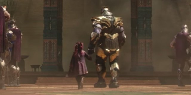 La teoría también dice que la mayoría de las veces cuando las personas discuten sobre Thanos, su miedo está envuelto en el color púrpura, claramente evidente en la escena anterior entre Gamora y Quill en el Benatar. La guinda del pastel, sin embargo, es cuando Gamora y Thanos llegan a Vormir. Allí, el sol naranja está siendo eclipsado por una luna púrpura, algo totalmente intencional.