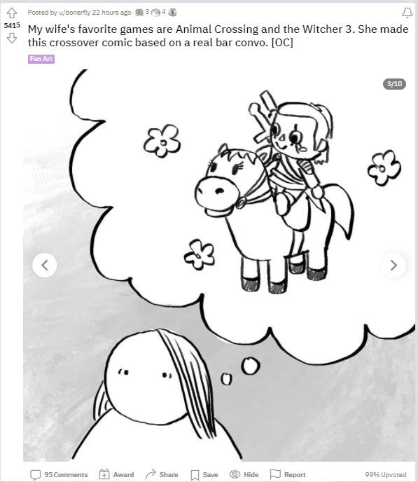 En uno de los cómics cruzados más inesperados, un fanático ilustra su comprensión de que Witcher 3 y Animal Crossing comparten muchas mecánicas.