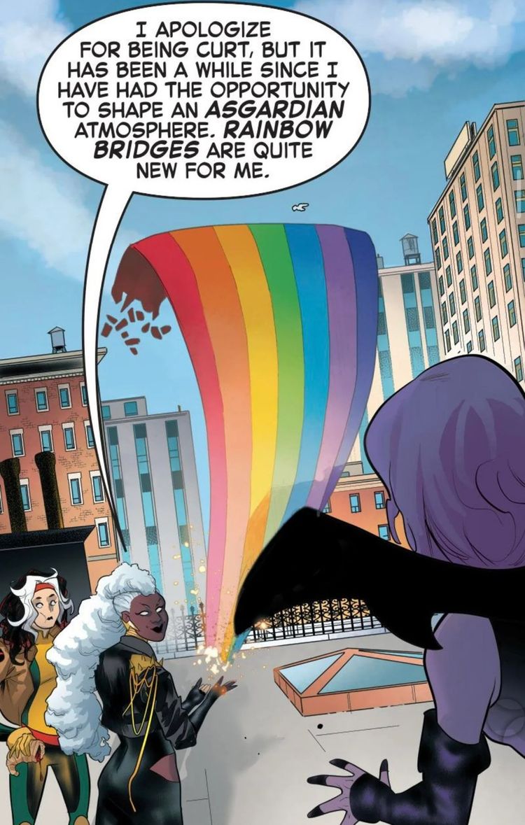 La controversia que rodea este momento se presta a que los críticos afirmen que la nueva habilidad de Storm simplifica demasiado el Bifrost y lo convierte en solo un puente arcoíris. Como maestro del clima, tiene sentido que Storm pueda producir un arco iris de la nada, pero cuando ese arco iris es un Bifrost, es más probable que los críticos lo cuestionen. Sin embargo, Storm explica que No sólo está produciendo un puente arcoíris, sino que también está dando forma a la atmósfera de Asgard.. Tenga en cuenta que, además de sus poderes, Storm es capaz de ejercer magia, que ha utilizado para cometer hazañas increíbles como desatar un Kaiju.