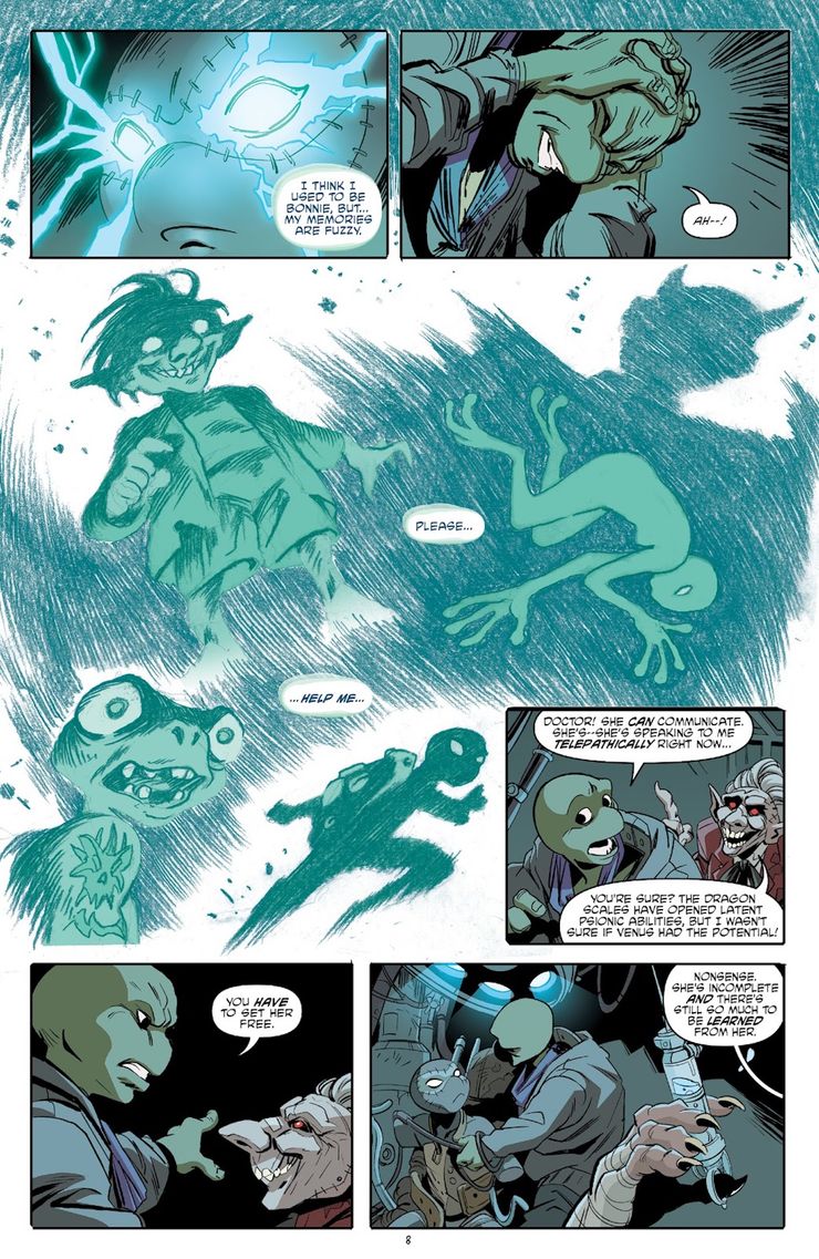 Dado que Venus de Milo no tiene el beneficio de años de tradición para trabajar en el desarrollo del personaje, IDW tiene una libertad sin precedentes con el futuro de su personaje. Venus fue reintroducida en Tortugas Ninja mutantes adolescentes #127 de Sophie Campbell y Pablo Tunica. Los números posteriores hacen numerosas actualizaciones a sus antecedentes, presentándola como el resultado de experimentos similares a Frankenstein realizados por un científico loco. Lo que diferencia aún más a Venus de las otras Tortugas es el misticismo asociado con ella desde su origen dragón. La científica usó escamas de dragón para reparar sus injertos, lo que la conectó con el místico Plano Astral. Este detalle le da una ventaja adicional en la contienda por la tortuga más poderosa. Porque a pesar del entrenamiento mutuo en artes marciales que poseen las otras Tortugas, las habilidades místicas de Venus la convierten en un arma viviente en todos los niveles.