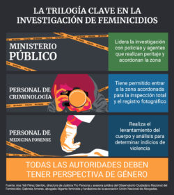 Aún así, hay tres claves que no pueden faltar en cada una de las investigaciones por feminicidio: el Ministerio Público (MP), los criminólogos y los médicos forenses.