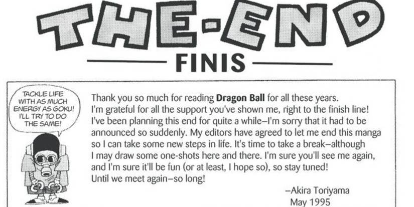 En el volumen final de esfera del dragón, se adjunta un agradecimiento, escrito personalmente por Akira Toriyama. Principalmente dice lo que uno podría esperar, como un agradecimiento por leer y una indicación de que es hora de que Toriyama asuma nuevos proyectos y nuevos desafíos. Sin embargo, junto al mensaje aparece el personaje avatar de Toriyama, Toribot, quien dice “¡Afronta la vida con tanta energía como Goku! Intentaré hacer lo mismo”.