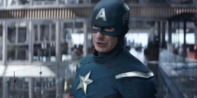 Cuando el Capitán América, Iron Man (Robert Downey Jr.), Hulk (Mark Ruffalo) y Ant-Man viajan en el tiempo a Nueva York 2012 en un intento por recuperar tres Infinity Stones, Tony Stark, vislumbrando la forma de Steve Rogers Rojo, blanco y azul: dice que el traje "no hizo nada por tu trasero".