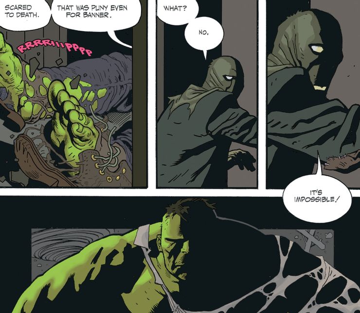 Bruce Banner acaba de ser asesinado por un supervillano de Marvel de una manera tan patética que incluso el Casco estaba avergonzado. Desde entonces El inmortal Hulk esencialmente reescribió la relación de Bruce y el Goliat Verde con la vida y la muerte, Hulk tiene una ventaja inquietante contra cualquier villano al que se enfrenten. En este caso, el enfrentamiento de Banner con Ebenezer Laughton, también conocido como el Espantapájaros, es tan aterrador que Bruce Banner literalmente muere de miedo.
