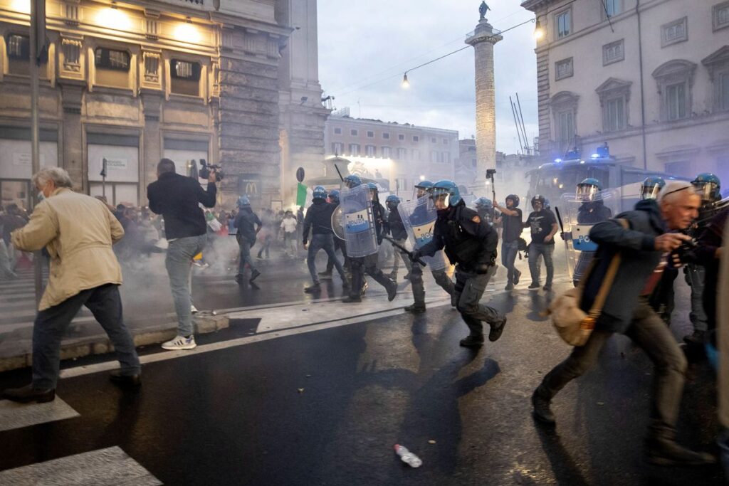El movimiento antivacunas, con la cobertura social e ideológica de los partidos de ultraderecha en Italia, volvieron a tomar este sábado el centro de Roma para protestar contra la obligación de disponer de un certificado de vacunación para prácticamente todas las actividades públicas, incluido el trabajo. Esta vez, sin embargo, aproximadamente la mitad de los 10.000 participantes de la manifestación se separaron de la marcha y se acercaron hasta el Palacio Chigi, sede del Gobierno de Italia, en actitud intimidatoria. Una amenaza insólita en las últimas décadas en Italia que despertó la condena de todas las altas instituciones del país. Hubo agresiones a la policía, gases lacrimógenos, cargas de la policía y el asalto de la sede de CGIL, el principal sindicato del país.