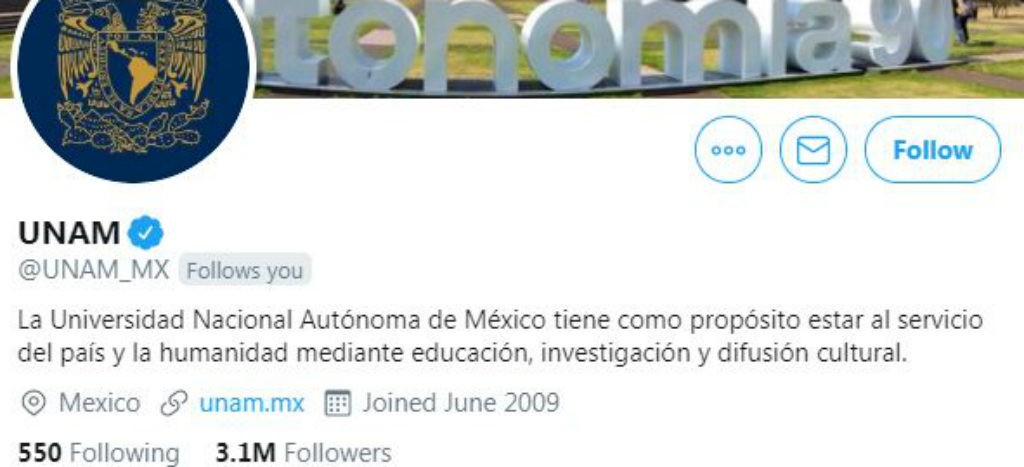 La UNAM incursionó en Twitter desde junio de 2009, red social en la que comparte información robusta, diversa y de calidad, reflejo de su quehacer al servicio del país y la humanidad mediante la educación, la investigación y la difusión cultural.