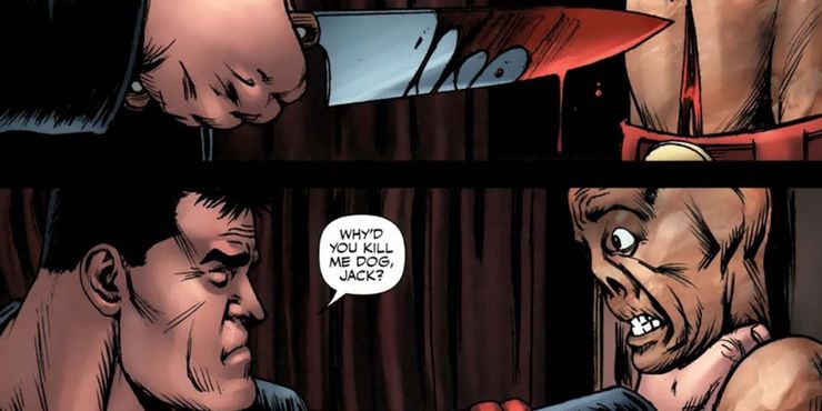carnicero billy desde Los chicos ha sufrido más pérdidas a manos de Supes que la mayoría en el universo del cómic, pero su mayor venganza llegó cuando mató a un miembro de los Siete por asesinar a su perro, Terror. En uno de los movimientos más trágicos de toda la serie, Butcher encuentra a Terror muerto. En respuesta, desata su venganza más fría y calculada contra Jack From Jupiter, asesinando brutalmente al Supe por lo que hizo.