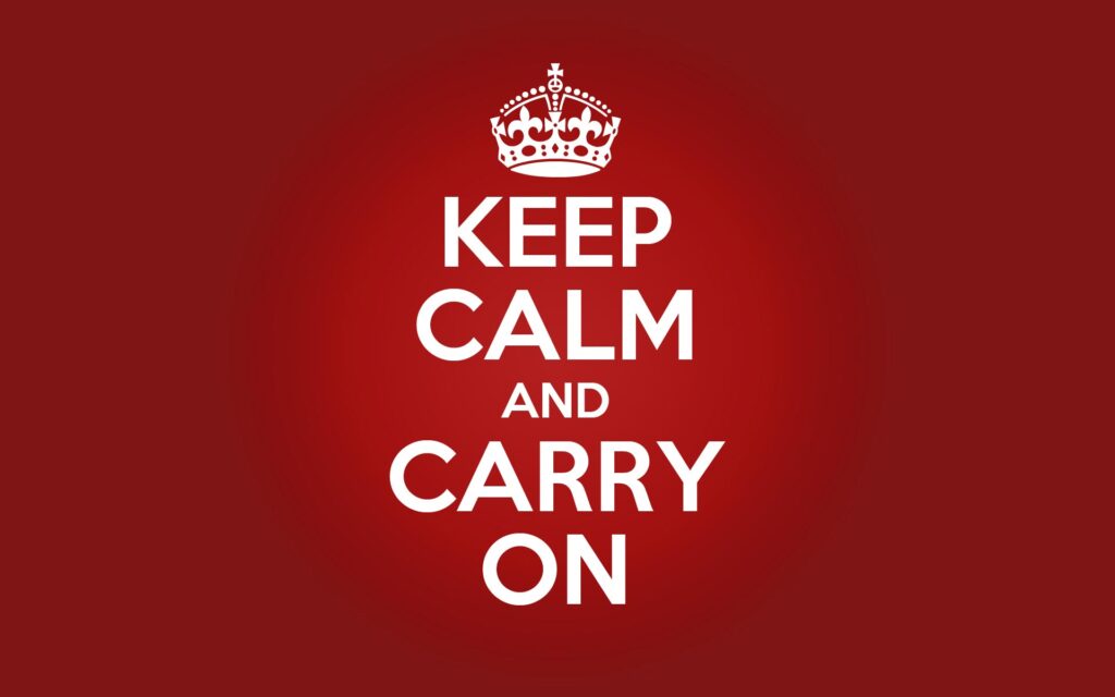 Seguro que en más de una ocasión has encontrado alguna camiseta o póster con esta famosa expresión: Keep calm and carry on. La traducción en castellano es: “Mantén la calma y sigue adelante”, una frase motivacional que tiene su origen en la Segunda Guerra Mundial. El gobierno de Reino Unido ordenó la producción de esta ilustración en 1939, con el objetivo de subir la moral a una sociedad que se encontraba bajo la amenaza de una invasión inminente. Sin embargo, finalmente el país nunca fue ocupado por la Alemania nazi, así que los carteles fueron retirados y escondidos bajo llave.