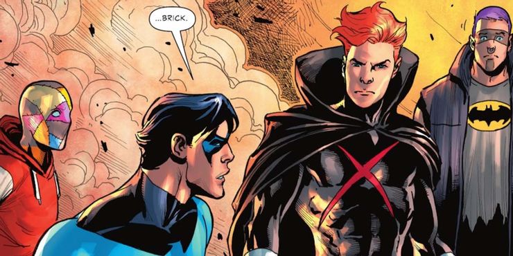 Teniendo en cuenta que todas las pistas apuntaban al estudiante impulsado por EMP como el nuevo Red X, la revelación tiene sentido. Brick inmediatamente hace la impactante revelación de que es el hijo de Nightwing, y eso sirvió como su principal motivación, pero Dick refuta directamente esa teoría diciéndoles que sus muestras de sangre mostraron que no son compatibles genéticamente. Entonces, ¿quién le dijo a Brick que era el hijo de Nightwing? La segunda X Roja. La jóvenes titanes el villano llega a la escena y revela que engañó a Brick y lo apuñaló con una espada, un golpe aparentemente fatal. Esa versión de Red X promete una segunda ronda con Nightwing mientras se teletransporta.