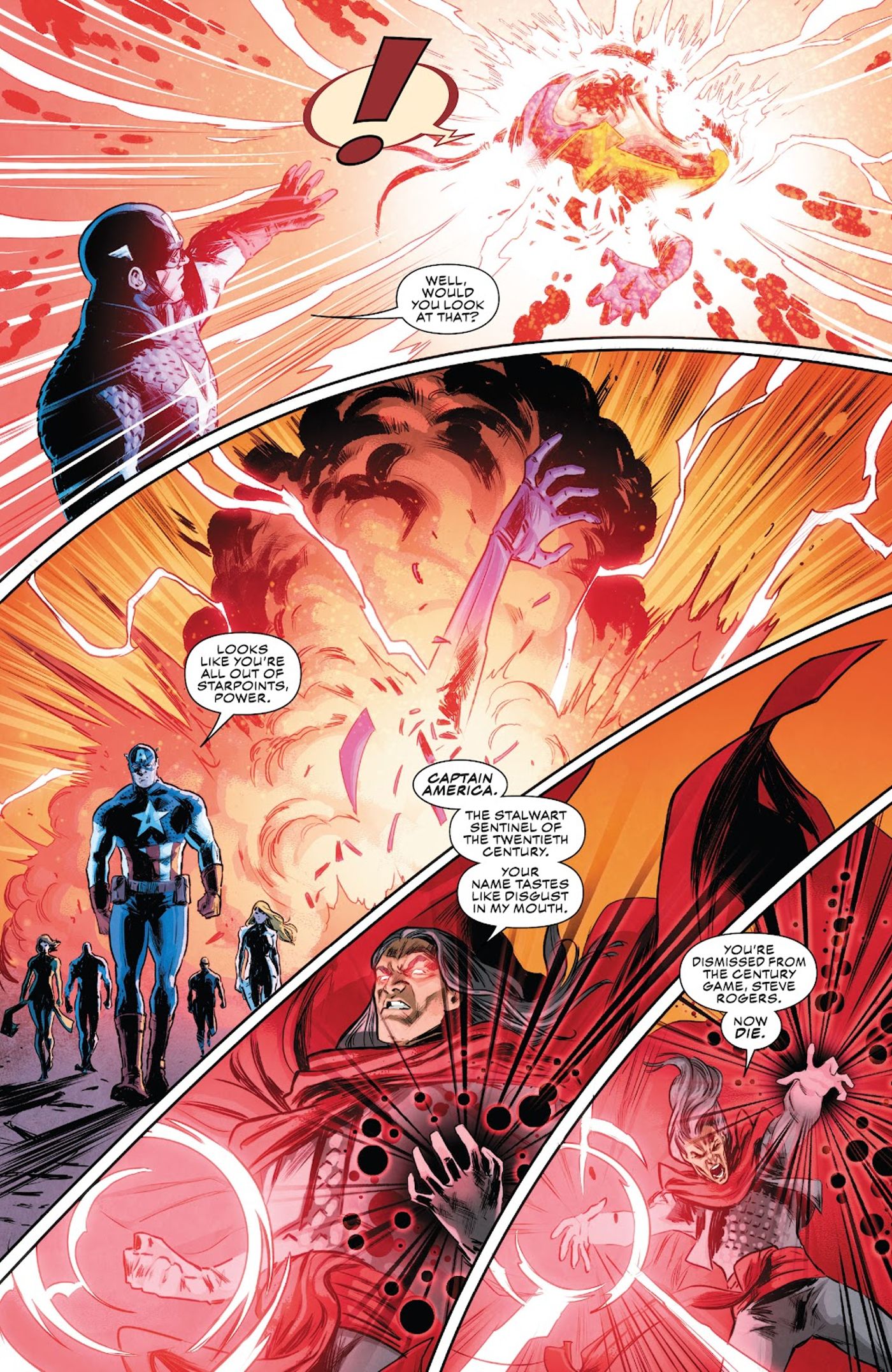 En Capitán América: Centinela de la Libertad (2022) # 11, de Jackson Lanzig, Collin Kelly, Carmen Carnero y Nolan Woodard, Steve Rogers y sus nuevos Invaders finalmente se enfrentan cara a cara contra uno de los líderes del Outer Circle, el Poder y su secuaz MODOK. Mientras la batalla continúa en el centro de Nueva York y los Invasores se enfocan en derrotar a MODOK, el Capitán América se enfrenta solo al Poder, y la batalla es tan física como ideológica. El Poder se burla de Steve al recordarle que el Súper Soldado era solo uno de los proyectos del Círculo Exterior para crear uno de sus Starpoints, sus principales agentes y agentes. El desafío de Steve hace que el Poder lo llame “un producto pasado de moda“, y luego “el centinela incondicional del siglo XX“.