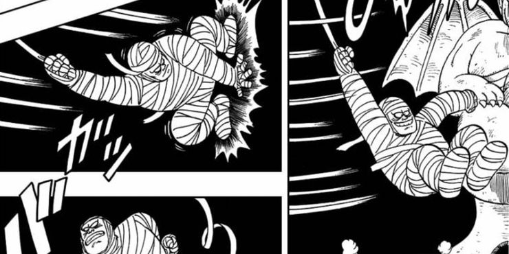 En esfera del dragón El Capítulo 102 de Akira Toriyama, Goku, Yamcha, Krillin y algunos de los otros Z Fighters se encuentran en un torneo que aparentemente fue creado en el Infierno. Esperando ayuda para encontrar la última Dragon Ball, los Z Fighters buscan a Fortuneteller Baba para que pueda adivinar la ubicación de la bola. Sin embargo, Baba quería una cantidad absurda de dinero para una sola adivinación, por lo que los Z Fighters casi perdieron la esperanza de que ella pudiera serles de ayuda. Sin embargo, Baba luego dijo que si podían vencer a sus cinco luchadores en un combate estilo torneo, les daría una lectura gratis, un desafío que los Z Fighters aceptaron con alegría. Entonces, uno tras otro, los Z Fighters lograron vencer a los campeones de otro mundo de Baba. Pero cuando fue el turno de Yamcha de dar un paso al frente, se encontró frente al ícono de la película de terror: la Momia.