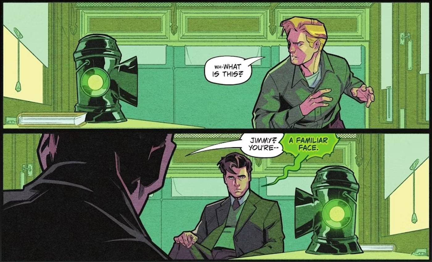 Alan Scott experimenta algo similar a través de la Llama Esmeralda, un espacio cósmico al que ingresa y que se manifiesta como un querido ex amigo. Este nuevo desarrollo es la última forma en que La historia del Linterna Verde se ha ampliado de una manera que afecta el pasado y el presente del manto..