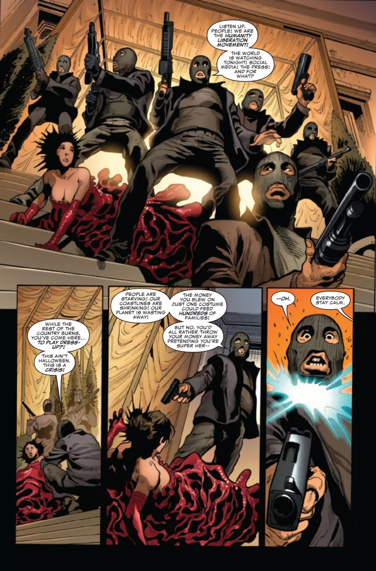 La prohibición de superhéroes de Kingpin y el movimiento para hacer cumplir su mandato con un equipo de ex supervillanos refleja movimientos similares del alcalde Nakano en Future State.
