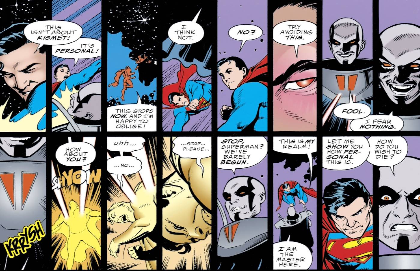 - Superman vence a Dominus con una técnica de meditación kryptoniana, derrotándolo y conquistando sus miedos.