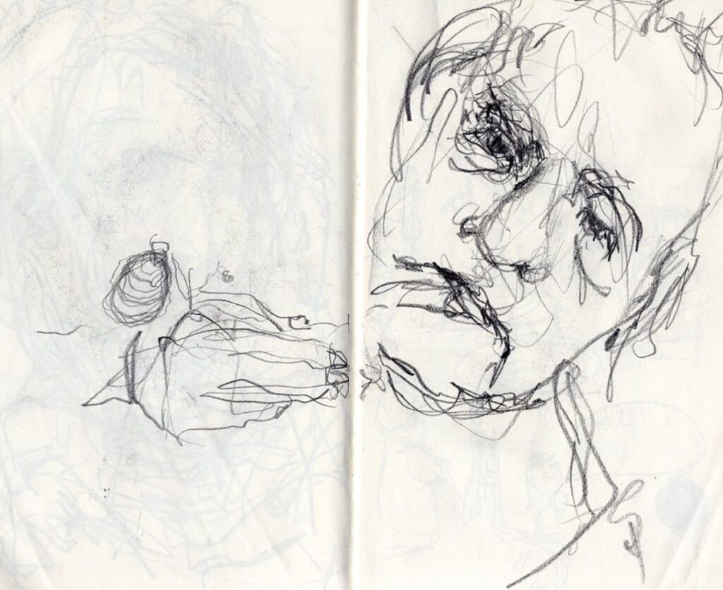 “Me gustaba verla dibujar. Aprender de ese momento en el que el dibujo sale del interior. Siempre hacía una espiral. Quiero pensar que es una rosa, su flor favorita”, cuenta el autor, a quien le llamaba la atención que ella, que no había dibujado nunca, hiciese un trazo continuo sin levantar el lápiz del papel. Técnica que, como profesor de dibujo, enseña a sus alumnos.