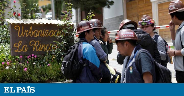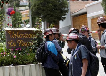 Mineros bolivianos vigilan la urbanización donde está la residencia de la embajadora de México en La Paz.