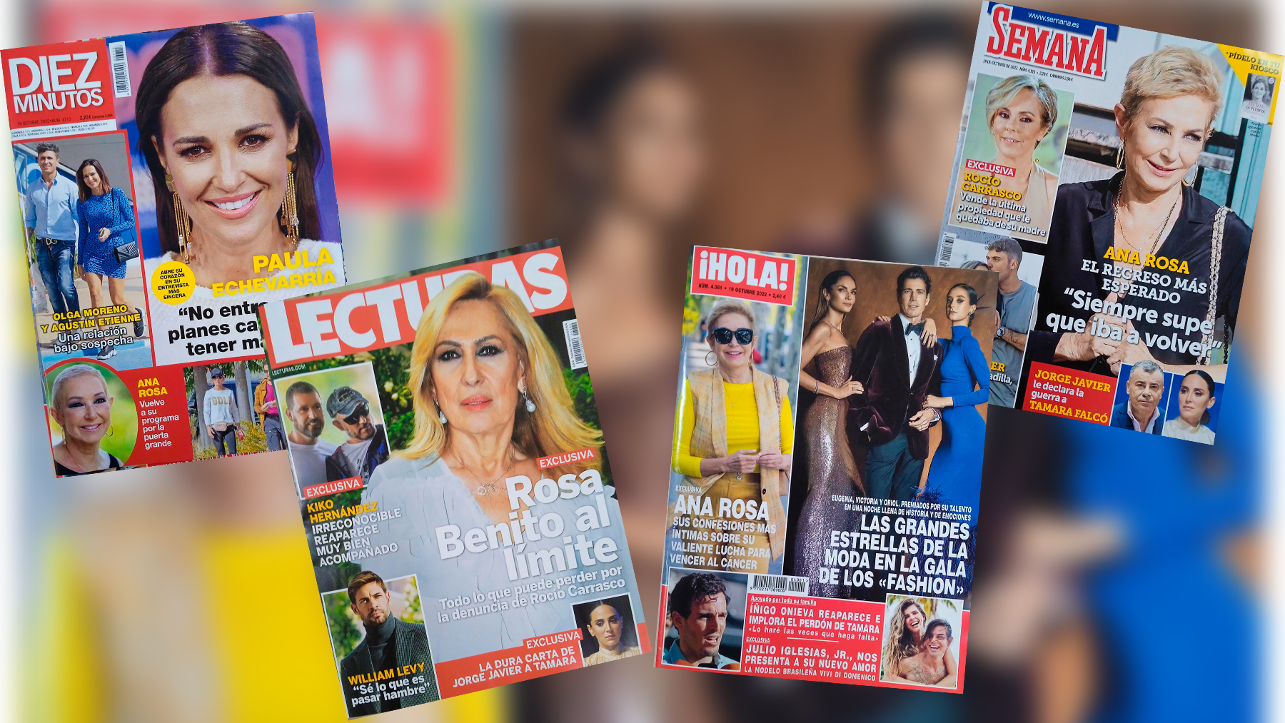 Nueva semana de revistas, esta semana, por adelantado debido al festivo con motivo del Día de la Hispanidad. En esta ocasión, la vuelta de Ana Rosa Quintana es uno de los temas más destacados, junto con la nueva ilusión de Julio Iglesias Jr. y la ‘guerra’ entre Jorge Javier Vázquez y Tamara Falcó a raíz de las declaraciones de la marquesa de Griñón en México.