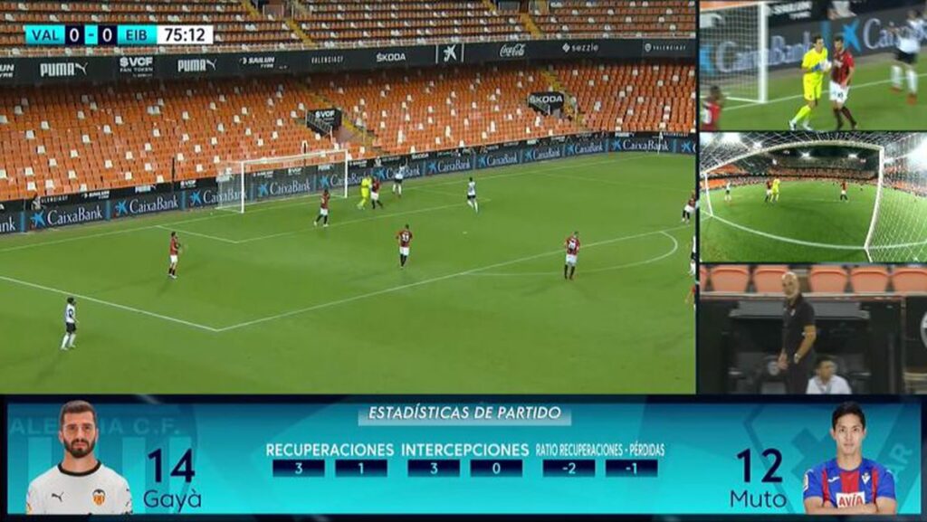El último avance de las retransmisiones televisivas de LaLiga permite al espectador disponer de cuatro cámaras distintas para ver el partido acompañadas de una treintena de datos de Mediacoach, la herramienta de análisis y vídeo de LaLiga, y de las opiniones y el análisis de expertos de la red como Ibai Llanos. Con la pantalla partida, es el aficionado quien decide dónde y qué mirar. ¿Un saque de falta desde la perspectiva del lanzador o como si fuera un portero? Usted elige.
