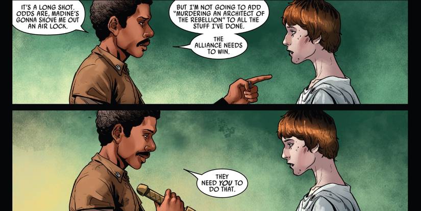 Sin embargo, Lando le deja claro a Mothma que todavía quiere ser un rebelde si se le da una segunda oportunidad.. Habiendo sido el único que pudo identificar a los secuestradores, a Lando se le permitió unirse a la misión de rescate a pesar de su juicio en curso. Como tal, parece que, con suerte, el esfuerzo ha valido la pena y que Mothma será quien le dé a Lando la segunda oportunidad que espera, explicando su futuro como general de la Rebelión en un futuro próximo antes de El regreso del Jedi.