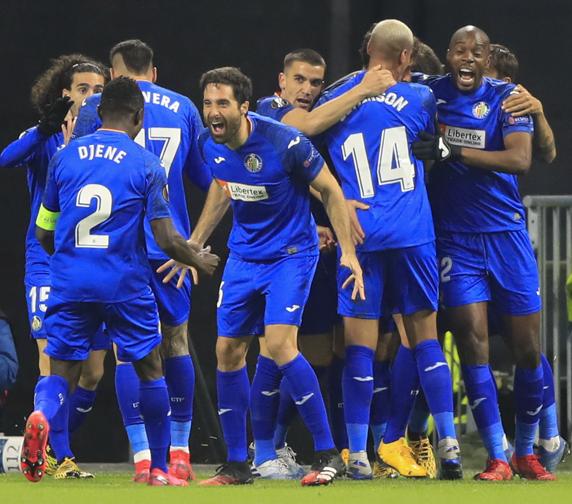Los jugadores del Getafe celebran la clasificación para octavos de final